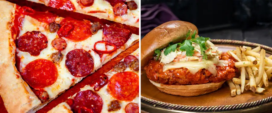 - Oktoberfest-inspired Burger: Angus beef patty, bratwurst, grilled peppers and onions, sauerkraut, and house-made mustard cheese on a pretzel bun (New)