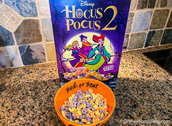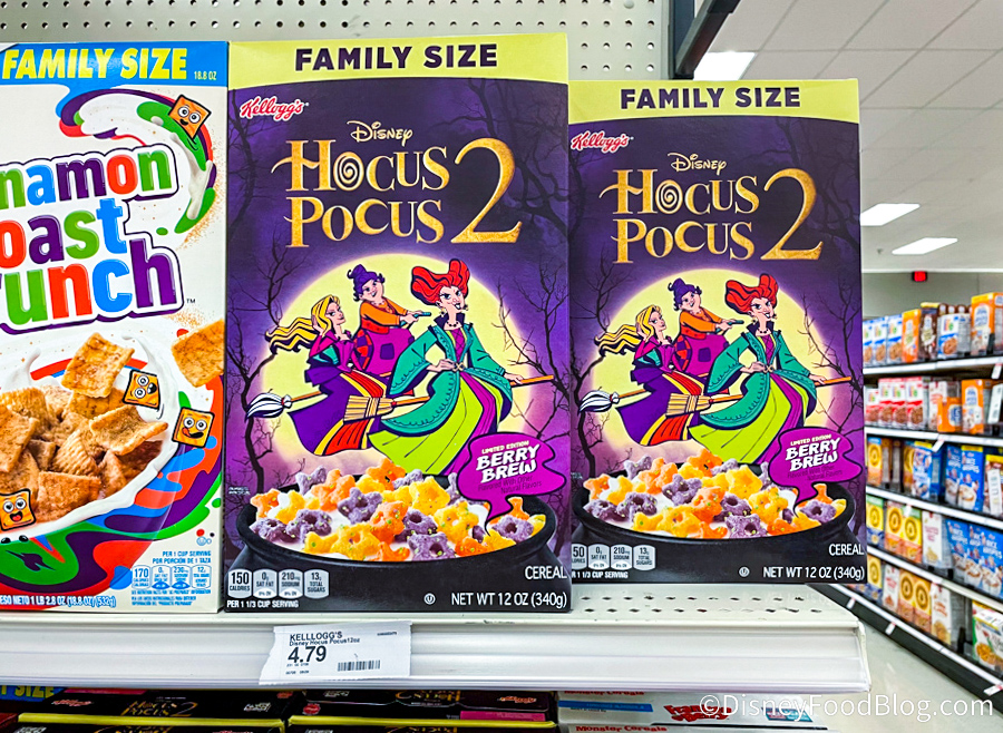 This is the Hocus Pocus 2 cereal from Kellogg’s! It’s out for Halloween and to promote the upcoming release of the movie, Hocus Pocus 2 (which will be on Disney+ on September 30th!).