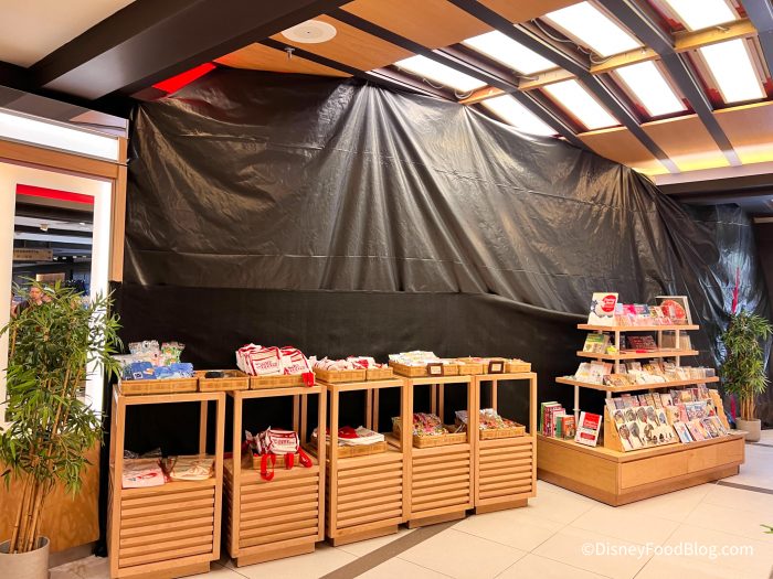 We’ll start off with some construction updates. First off, construction is continuing over at Mitsukoshi in the Japan pavilion. When we spoke to a Cast Member a few weeks ago, they told us that the store was getting a bit of remodeling done.