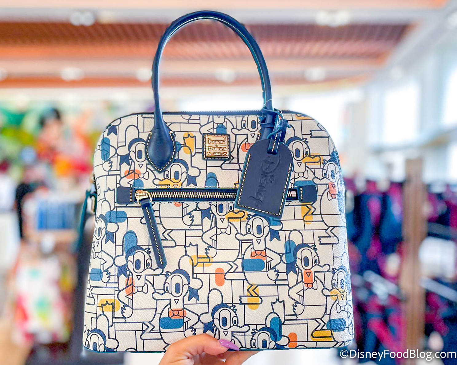 There’s a NEW Dooney & Bourke collection available in Disney World! So far we’ve spotted it at Creations in EPCOT, but it’s made its way to Magic Kingdom as well. You can check out the pattern featured in the collection on the satchel below.