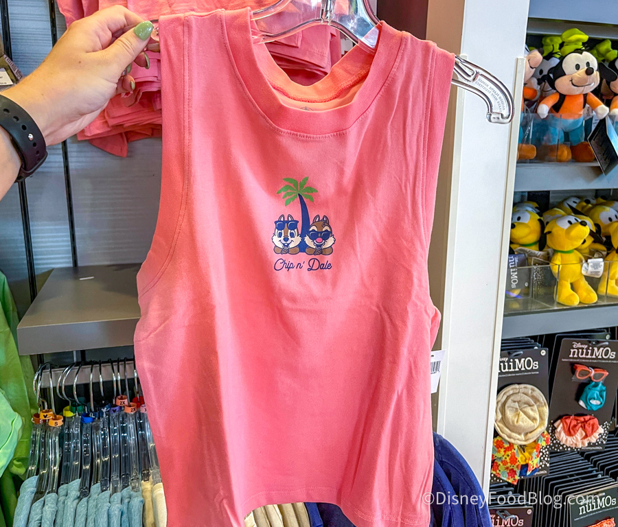 A new Chip ‘n’ Dale shirt has arrived just in time for…summer? These two chipmunks look awfully cool and relaxed on this pink tank.