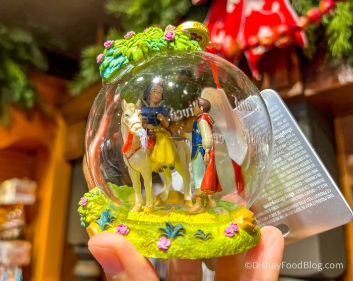 It’s never too early to start shopping for the holidays, and there are NEW ornaments in Magic Kingdom to get you in the mood. This Snow White ornament is $26.99.