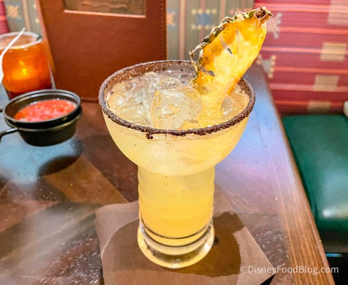 The pineapple shines through without being the ONLY thing we can taste (which happens often with pineapple cocktails in Disney World) and it’s not overly sweet either. The tortilla salt rim is a fun new twist on the typical margarita garnish, and it definitely has a bit of a corn flavor to it. The dehydrated pineapple slice was a nice touch but didn’t add too much to the overall experience.
