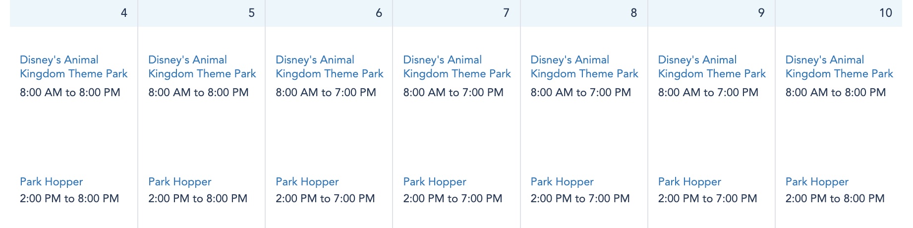 And finally, Animal Kingdom‘s hours are a little all over the place next week. On September 4th and 5th, it is open from 8AM-8PM.