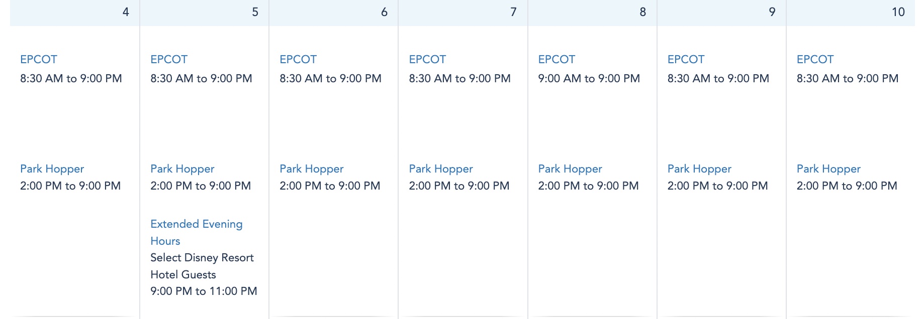 EPCOT Park Hours