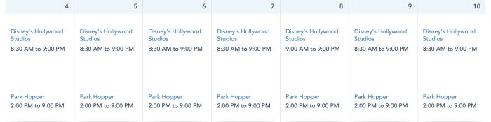 Hollywood Studios will be open every day next week from 8:30AM to 9PM.