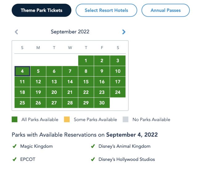 …and Select Disney World Resort Hotel guests, park pass reservations are completely open for next week.