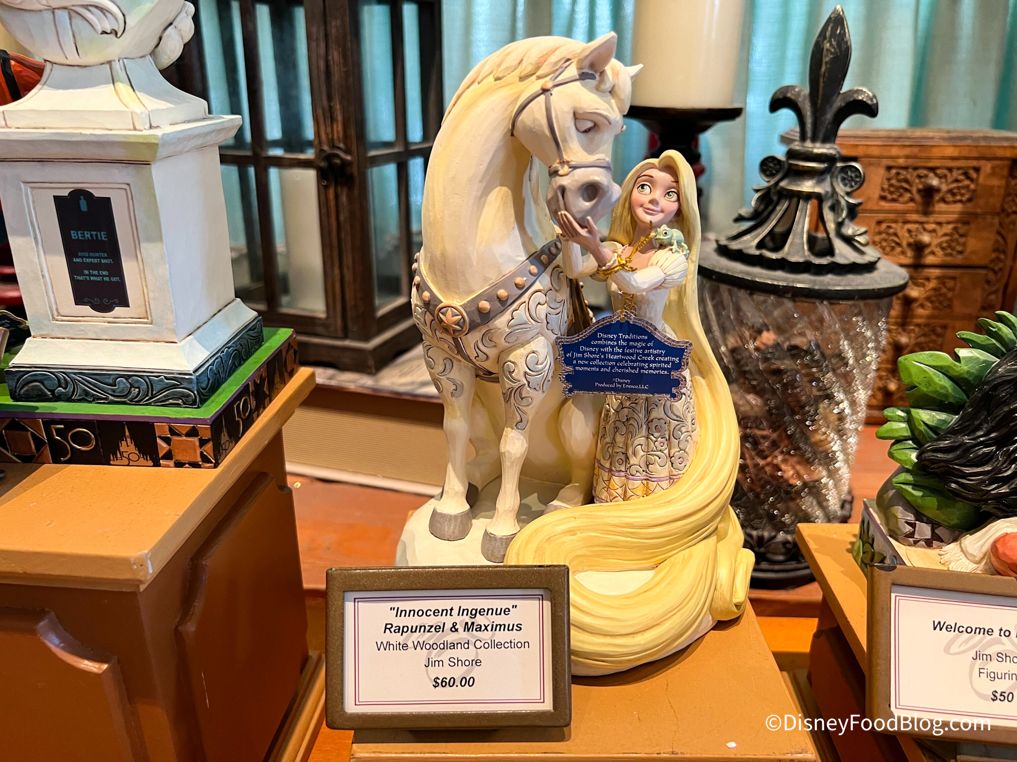 At Bonjour Village Gifts, we saw some Disney collectible figurines. First up is this Tangled-inspired figurine called “Innocent Ingenue.” It shows Rapunzel with Maximus the horse and it is $60.