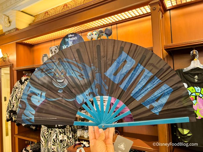 The Disney World parks are hot, so if you’re looking for a way to keep cool, you can grab this Ursula fan! It is $12.99 and says “Diva” and has a picture of the Sea Witch herself.