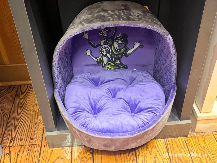 At Memento Mori, we saw all sorts of things for Haunted Mansion fans — including pets who are Haunted Mansion fans! We spotted this Haunted Mansion pet bed that’s made to look like a Doom Buggy from the ride. We’ve also seen this bed in Disneyland and at Disney’s Hollywood Studios. It is $59.99.