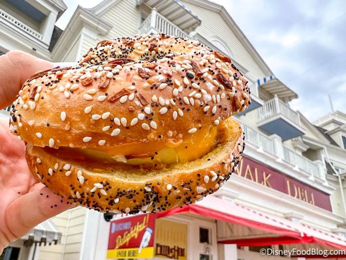 And finally, we have BoardWalk Deli. BoardWalk Deli is the newest addition to the BoardWalk Inn and serves breakfast, lunch, and dinner. Let’s get into a few of this quick spot’s most popular items! At breakfast, the Everything Bagel Sandwich is a real winner. This bagel sandwich is made with cage-free egg, a sausage patty, and cheddar on an everything bagel with your choice of side. This sandwich is a really good option! The egg was runny, and they were not shy with the cheese. If you want to get the Everything Bagel Sandwich, it’s $8.99.