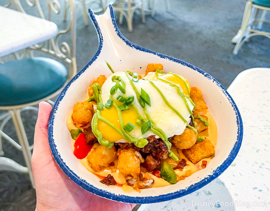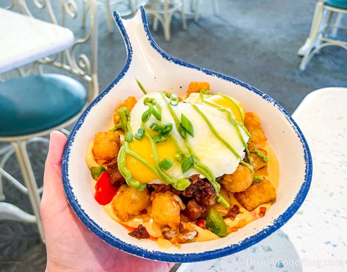Our reporter’s first reaction to this was that the BBQ Brisket Skillet might very well be some of the BEST breakfast food in all of Disneyland! 😮