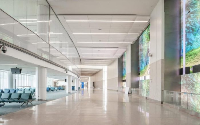 © Matt Good | Windows on Orlando, one of the Experiential Media Environment features, will adorn the airside concourse, which will serve 15 gates outfitted with facial recognition.