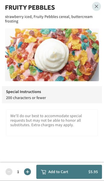 You can click on an item and it’ll give you a description, plus you can enter special requests — Everglazed says they’ll do their best to accommodate! From there, you can add items to your cart.