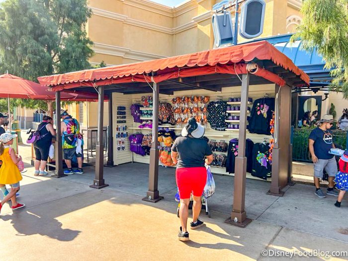 Keep in mind that the merchandise will generally only be available to those attending the party — and unfortunately, party tickets are completely sold out. For the most part, we found these items at Five & Dime (all the way at one end — the other connected stores didn’t appear to have the merch), and we found some of them over at the merchandise kiosk on the side of The Little Mermaid — Ariel’s Undersea Adventure (where you’ll often find festival merchandise booths in California Adventure).