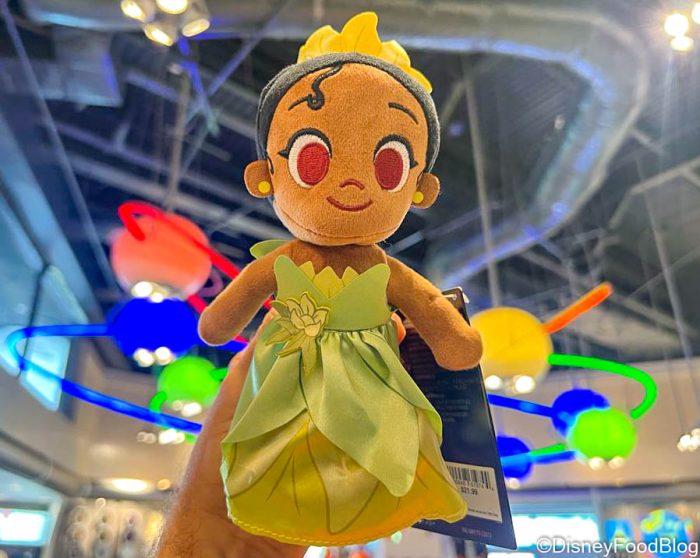 Head over into Tomorrowland and you’re…almost there (sorry, we had to). That’s right — over in Star Traders, you can grab the Tiana nuiMO Plush! She’s wearing her beautiful green gown, gold earrings, and crown.