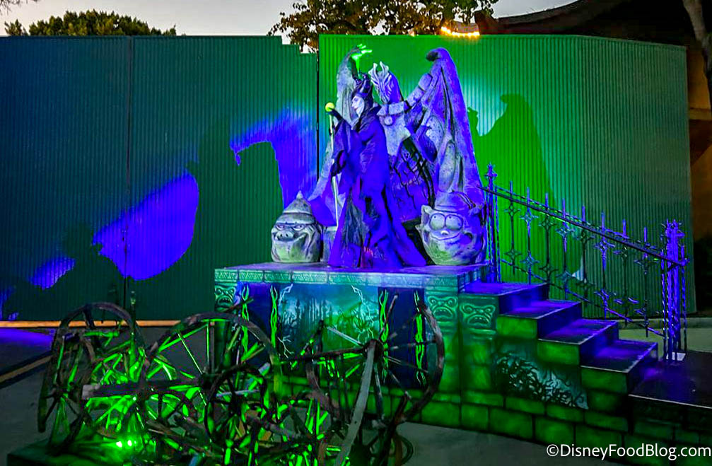 Elsewhere, we found the mistress of evil herself, Maleficent, at a Treat Trail with surrounded by green lights (mimicking her flames) and spinning wheels (of course).