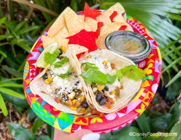 - Street Corn Tacos: Two tacos with black beans, roasted corn, poblano peppers, and red onion topped with pico de gallo, chili-lime mayonnaise, and cotija served with chips and salsa