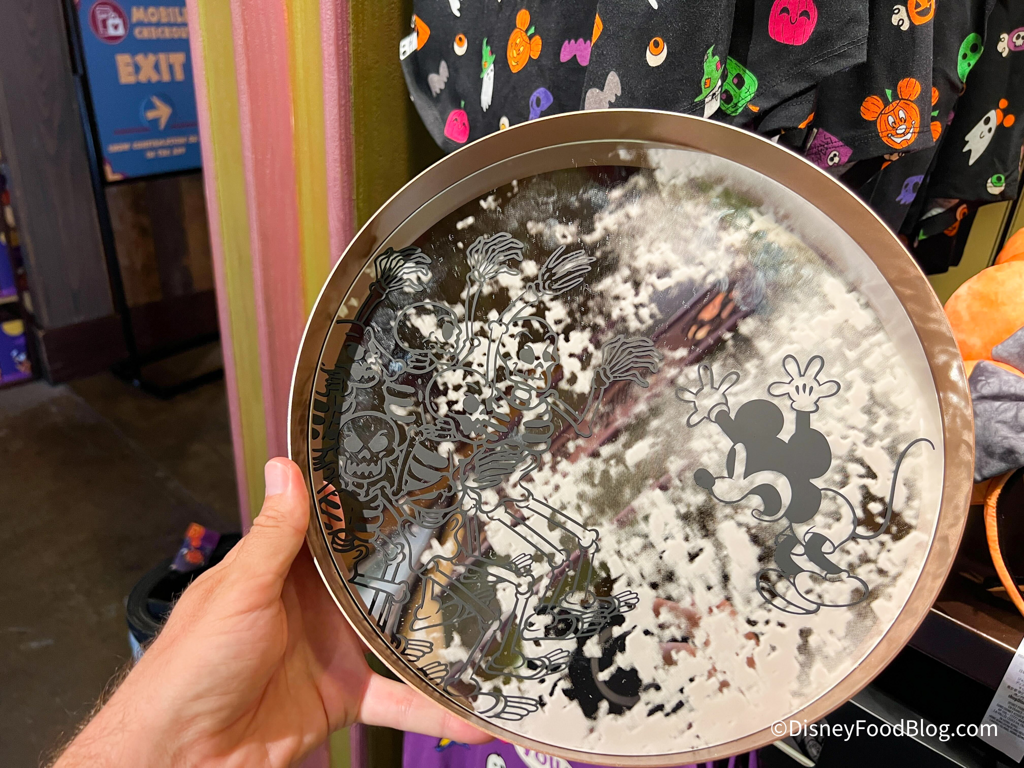 You can also get this Skeleton Dance Tray! It’s a reflective tray that shows Mickey being frightened by the skeletons. It is $39.99. This item is currently sold out online, but available in Animal Kingdom!