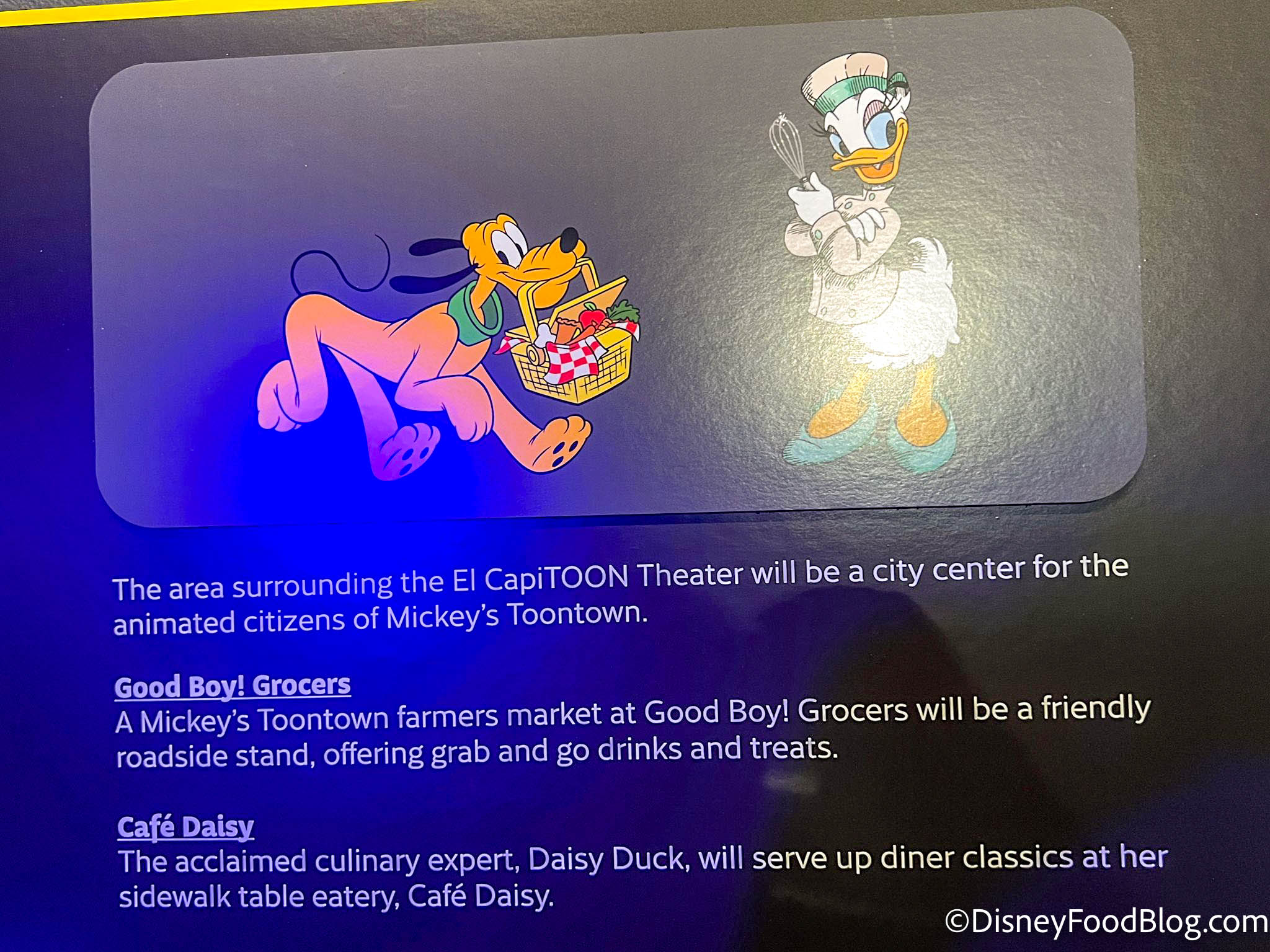 The reimagining of Toontown will introduce the brand new Good Boy! Grocers farmers market as a space to get all kinds of grab-and-go eats, and Cafe Daisy will be the combination of three previous quick service spots, including Daisy’s Diner.