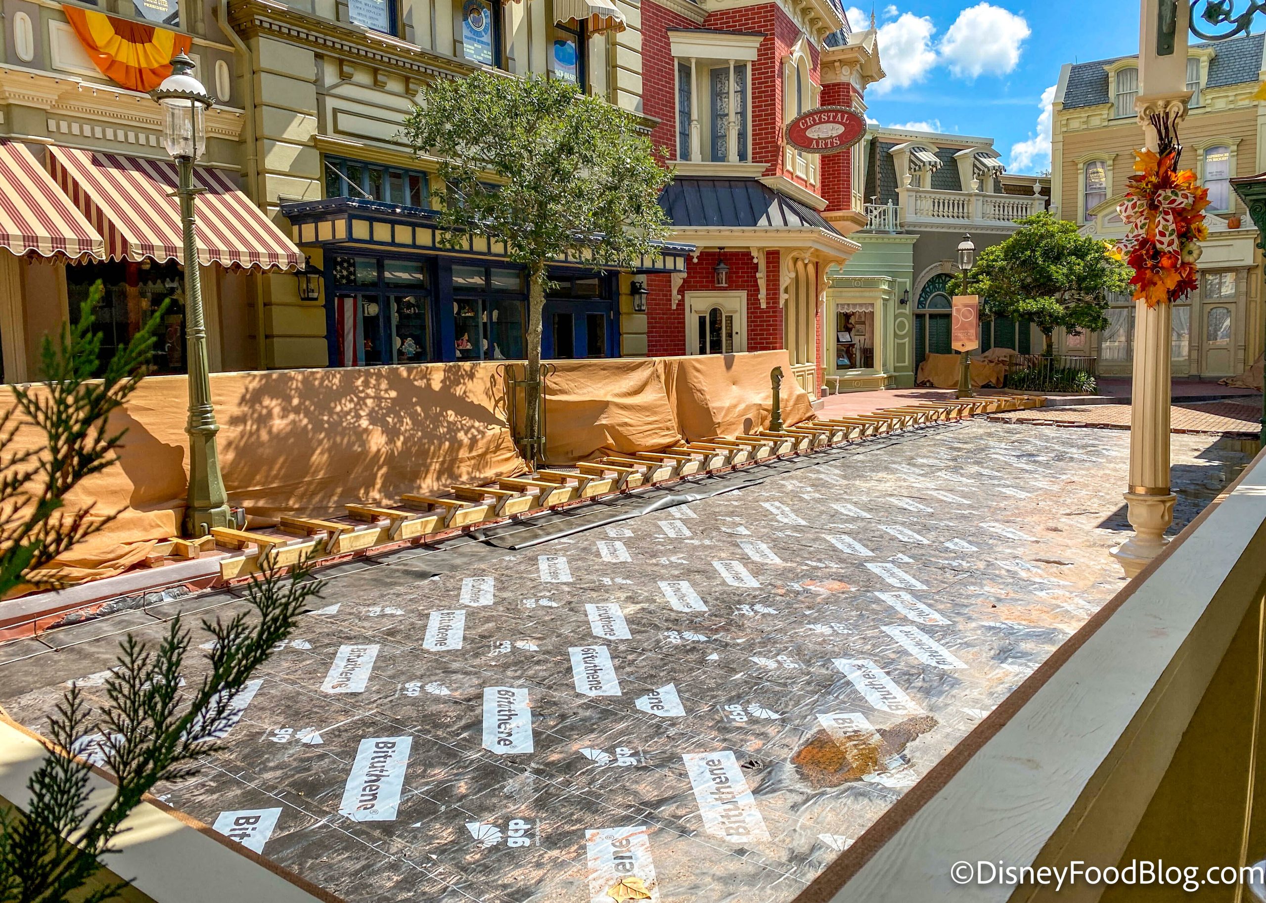 A portion of Main Street, U.S.A. is still undergoing construction. This area, known as Center Street, is just off Main Street and the road is being resurfaced. As a result, you can’t walk all the way down the street.