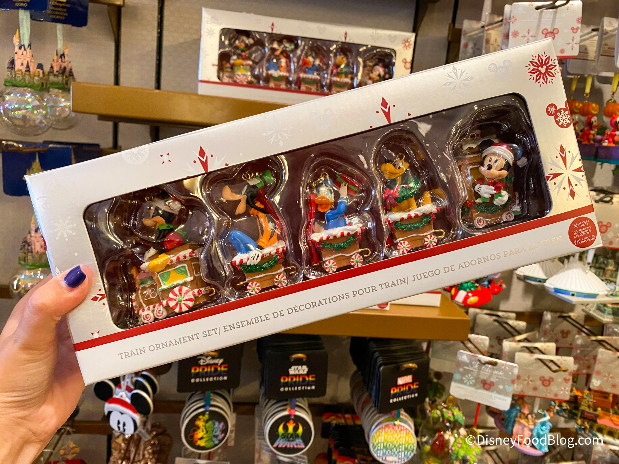 We saw TONS of new ornaments over at Celebrity 5 & 10. First up, we have this Train Ornament Set. It comes with five ornaments all made to look like different train cars. You can grab the set for $44.99.