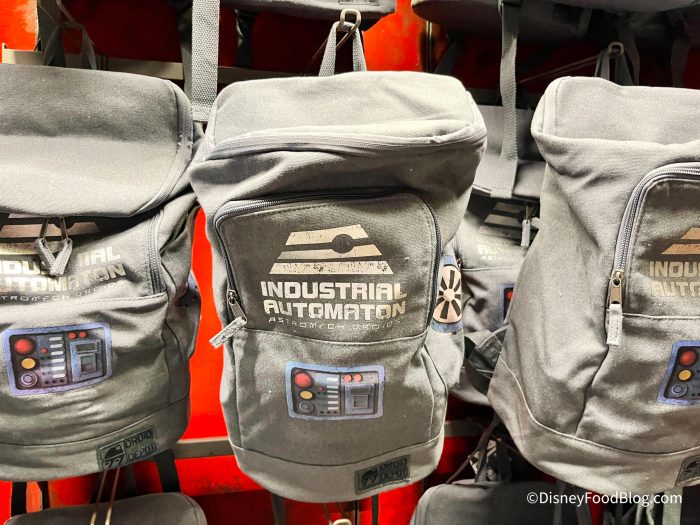 It’s a gray backpack and says “Industrial Automaton” on it. You can use it to carry your droid around in the park after you’ve built it. The backpack is $60.