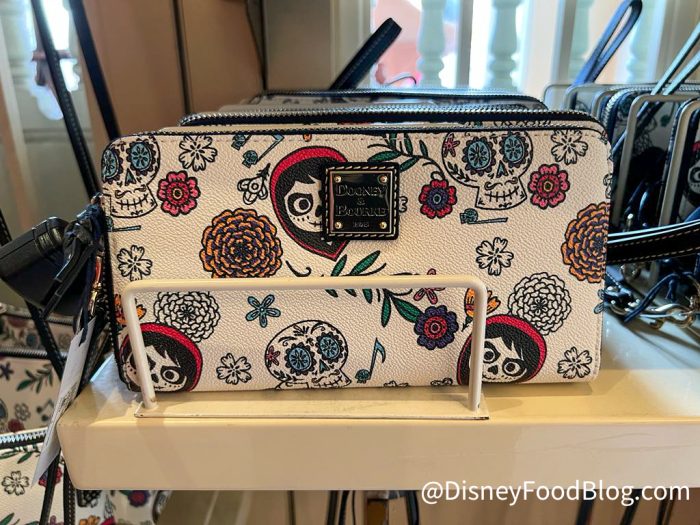 The Coco Dooney & Bourke Collection has arrived in Disney World stores and online and features a fun floral sugar skull pattern. The smallest bag in the collection is the Miguel Dooney & Bourke Wristlet Wallet available for $168.