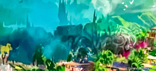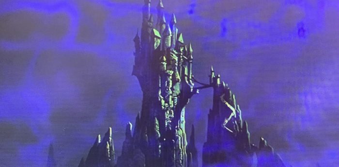 There appear to be some spires/buildings in the distance, with one big one popping up right in the center. That back structure looks similar to Maleficent’s castle on Forbidden Mountain.