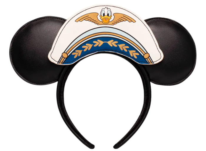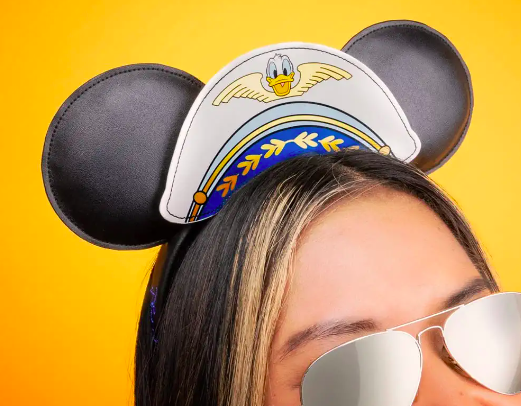 These ears (designed by Loungefly) are made out of faux leather and have a pilot’s hat in the middle that features Donald himself!