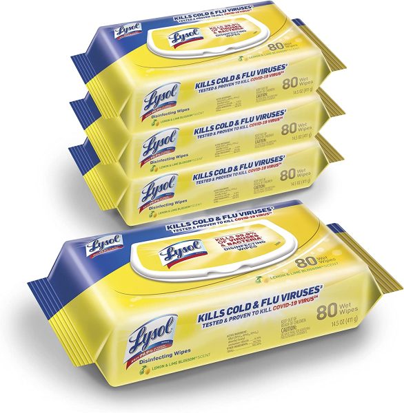First, on Amazon, you can pick up Lysol disinfectant wipes, which kill lots of viruses, including cold and flu viruses.