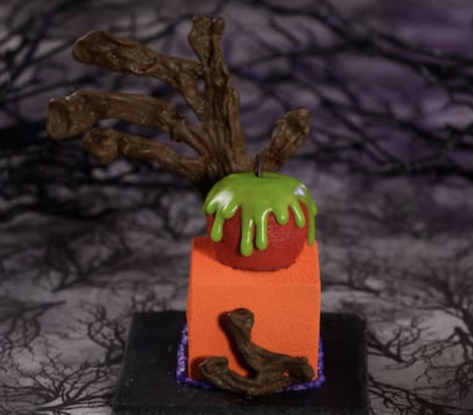 - Poison Apple Trifle: Layers of caramel crunch, apple mousse, caramel mousse, and vanilla cake with buttercream and fondant décor (New)