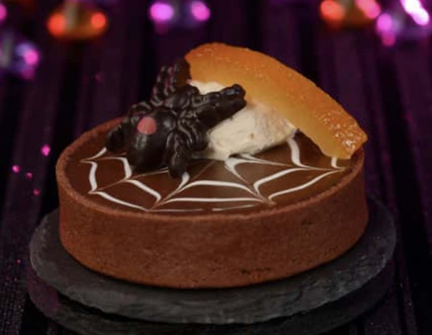- Black Widow Tart: Spiced milk chocolate tart filled with orange curd, pomegranate molasses whipped cream, candied orange peel, and a dark chocolate spider (New)