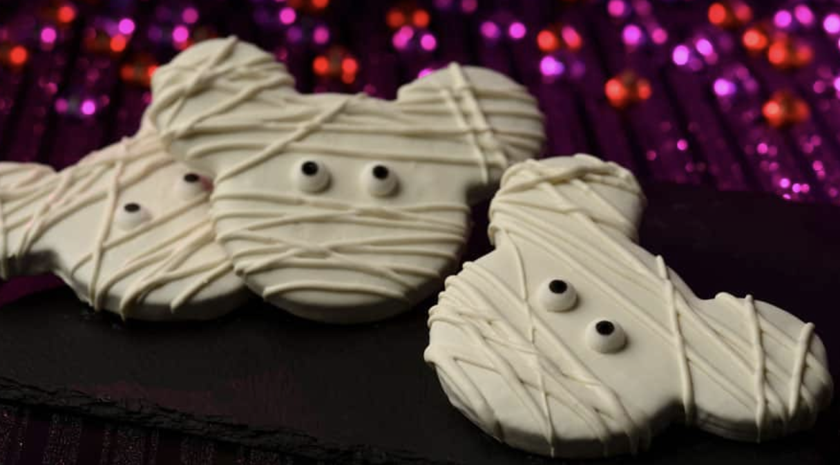 - Mickey Mummy Cookie: Mickey-shaped chocolate cookie with white chocolate mint frosting (New)