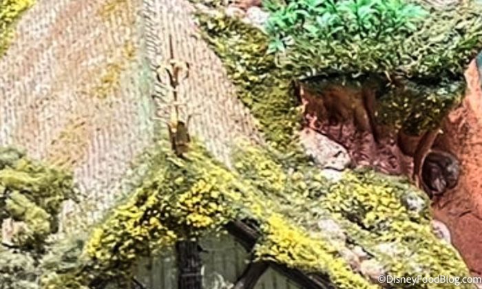 In one of the gardens, we spotted some gourds that were arranged in a particular shape, and it doesn’t look like it was an accident. It’s a little bit tricky to tell exactly what the Imagineers were trying to do here — our best guess related to The Princess and the Frog would be that they’re creating the shape of Louis the trumpet-playing gator! See the little pumpkin at the bottom? That could be a gator’s claw. And it looks like he might even be holding a trumpet!