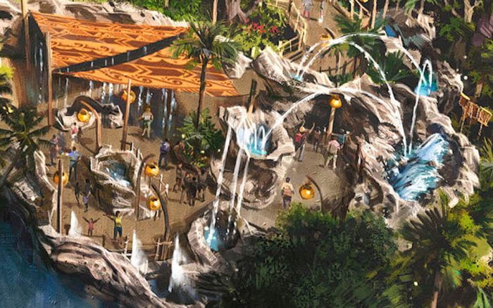From this area, it seems like there will likely be a path that leads you up to a larger area with more water and rockwork. That path isn’t clearly marked here though and seems to be covered in foliage. It’s very possible that there will be more water effects or other special things to look at here, but Disney hasn’t given us a peek at those just yet!