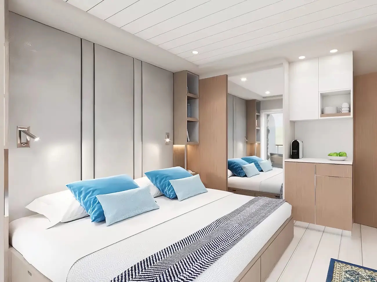 Of course, the luxury of living at sea will cost you: homes inside the ship start at a cool $875K for a studio cabin with a Murphy bed and go up to $8 million. That’s a lot of money for such a small space! However, that price includes EVERYTHING, including all food, drinks, wellness doctor visits (yes, really), internet and wi-fi, laundry services, onboard entertainment, and pretty much all other living costs.