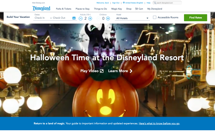 On the home pages for Disney World, Disneyland, and Disney’s Aulani Resort, there is no longer a COVID-19 warning at the top of the page.