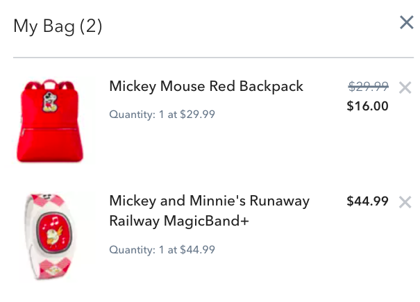Once you add any item to your cart, the red Mickey Mouse backpack will automatically be discounted to $16.
