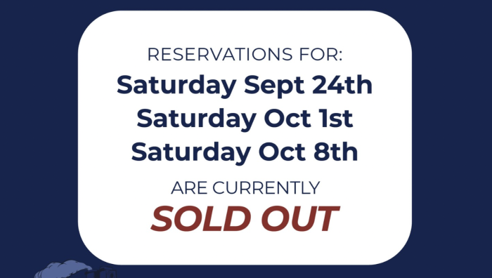 If you were hoping to reserve the Sunshine Flyer for an upcoming trip, you can book with them up to four days before your trip — unless they’re sold out. They just announced that three different Saturday dates are fully sold out, including September 24th, October 1st, and October 8th.