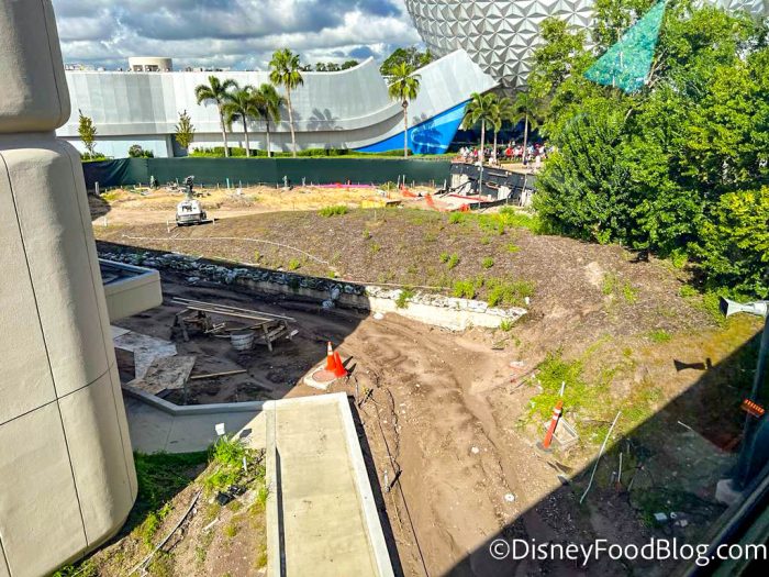 Following along with some other projects at the front of EPCOT, the area next to Guest Relations and the Guardians of the Galaxy: Cosmic Rewind show building is still under slow construction. Disney hasn’t clearly indicated what the plans for this area are, but before it was roped off, it was a pathway that led over to World Discovery. We hope it reopens soon to offer a shortcut by the new coaster.