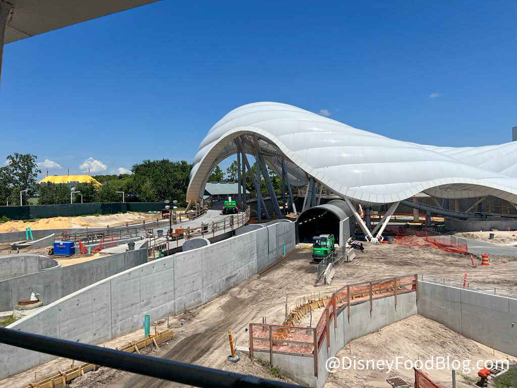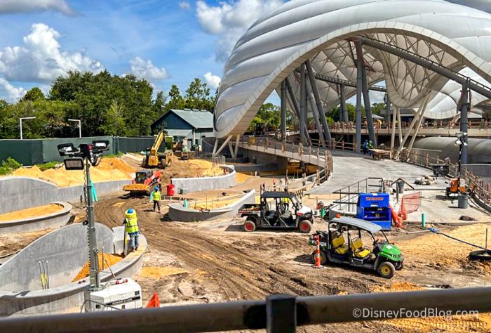 In case you’ve missed past updates, we’ll bring you up to speed. So far, the canopy for the ride seems to be mostly completed, and a lot of the current construction is on the ground.