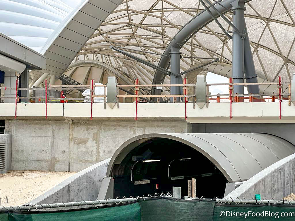 The area around the tunnel (where the Walt Disney World Railroad will eventually travel through) has also seen some progress. Remember that the Railroad has been closed due to TRON construction since 2018.