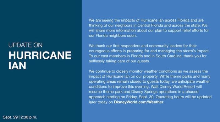 - Disney Cruise Line Comments on Potential Impacts of Hurricane Ian