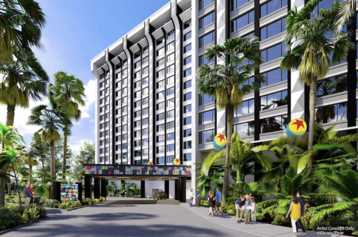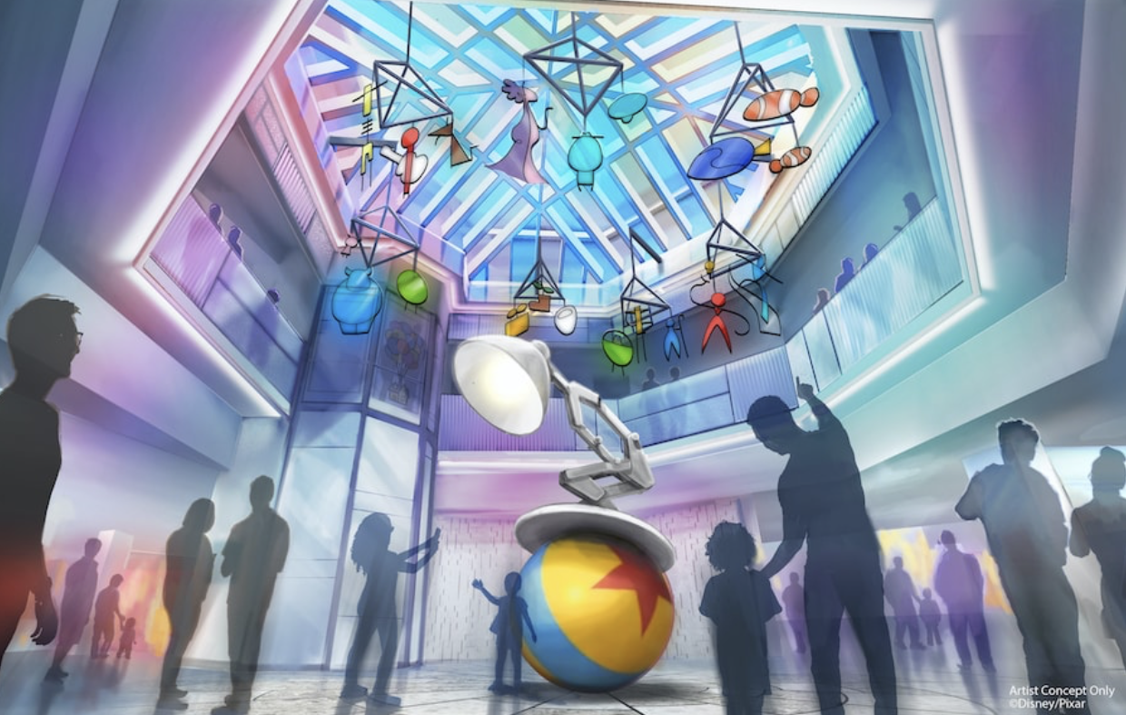 Paradise Pier Hotel is being re-themed to Pixar and will be called Pixar Place Hotel. Disney has said that the hotel will “weave the artistry of Pixar into its comfortable, contemporary setting” and make it feel like you’ve stepped into a Pixar art gallery. And now, we have an update on these renovations happening at the hotel!