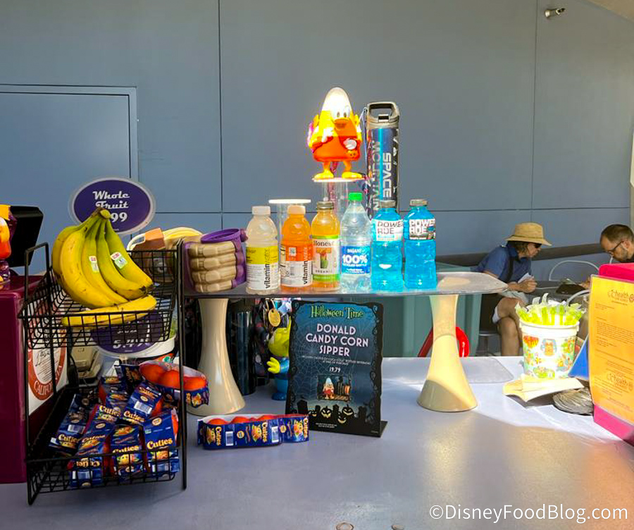 You can opt to get a nonalcoholic beverage in your cup or ask for your drink on the side, and the straw is accessible on Donald’s back. In addition to where we found Donald, you can also find the Donald Candy Corn Sipper at the following locations in Disneyland Park: