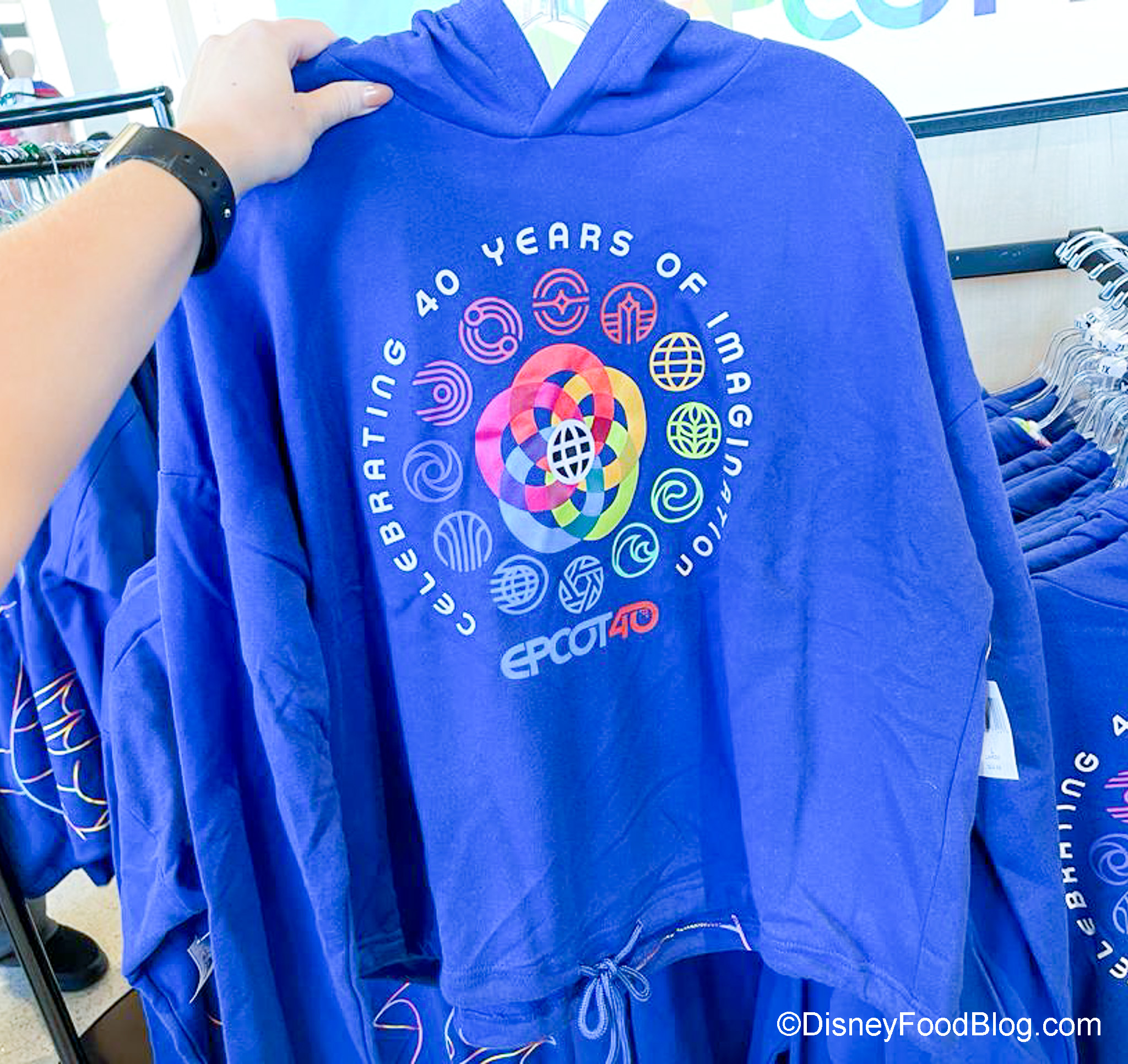 You want some fun 40th anniversary clothes? We’ve got TONS, including a Zip-Up Hoodie for $52.99 with the EPCOT 40 logo on the front…