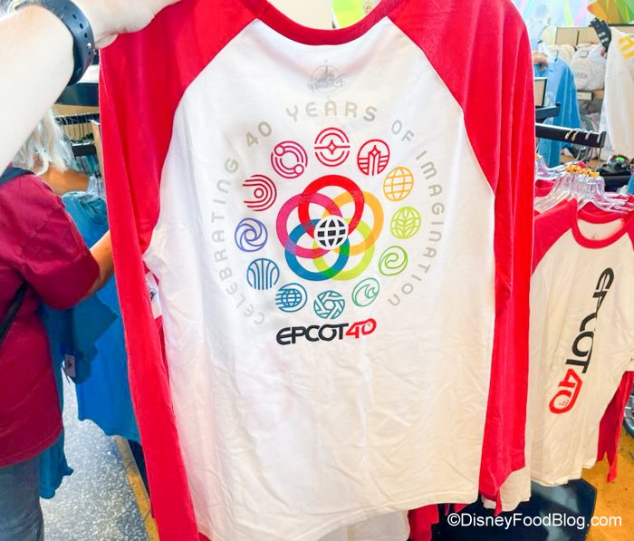 This Red and White Raglan Shirt for $39.99 is also cool. It says EPCOT 40 down the front…