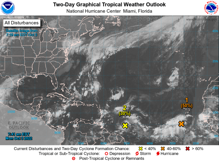 Previously, the National Oceanic and Atmospheric Administration’s National Hurricane Center was tracking 2 disturbances. That information is included below for referential purposes.
