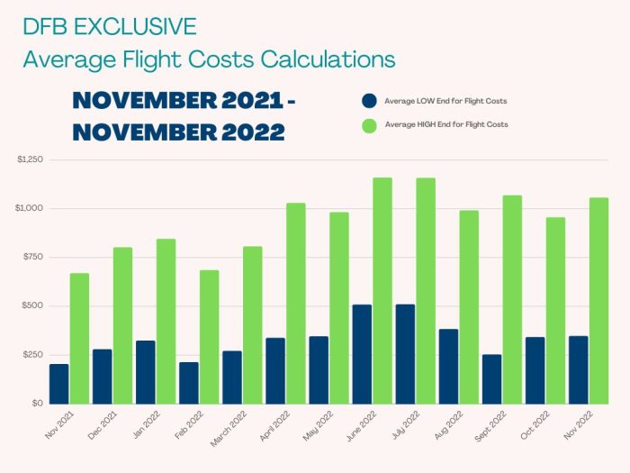 So, how has that changed from what we’ve seen in recent months? Well, the lower end cost is just a few dollars more expensive than what we saw for October. It marks another increase in flight costs from what we saw for September, but a slight decrease from the costs in August.